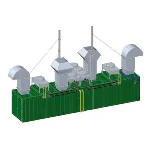 Las plantas de energía 2G se pueden instalar de varias maneras, dependiendo de las condiciones de instalación y los requisitos para el aislamiento acústico. Por lo tanto, se pueden incorporar en fábricas y plantas, así como en edificios existentes o sistemas de calefacción o se pueden configurar por separado en un contenedor o sala de máquinas. Con el paquete de aislamiento acústico adecuado, la emisión de ruido puede ser tan baja como 35 dB (A) a una distancia de 10 m.