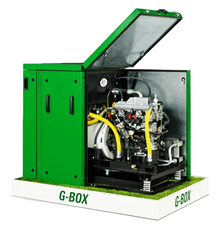 El g-box es la pequeña planta económica de 2G con una potencia eléctrica de hasta 60 kW. El módulo viene listo para la conexión e incluye un gabinete de control con controlador PLC. Esta potente unidad funciona de manera extremadamente eficiente, la salida de bajo ruido la hace adecuada para diversas aplicaciones como:
